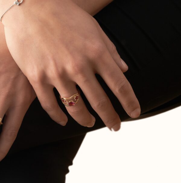 COCO, inspired by my personal sense of family cocooning. The design showcases a brilliant 4mm stone, a 7x5mm oval stone, and a 5x3mm pear-shaped stone, carefully chosen for their sparkle and beauty. These gemstones symbolize protection and happiness, adding a touch of magic to every piece. COCO embodies love, security, and the joy of family life, captured in unique, timeless designs.